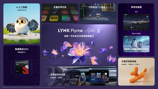 依托吉利星睿智算中心2.0云计算平台,LYNKFlymeAuto2融合星睿AI大模型、阶跃多模态模型,赋予座舱更强的感知与理解能力,能够精准判断用户情绪,自适应切换对话风格,陪你一起开心,也能为你解忧,实现真正自然的超拟人交互;一句话输出,即可生成完整出行攻略,进化为够聪明、懂应变的出行知己。