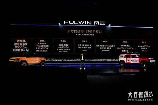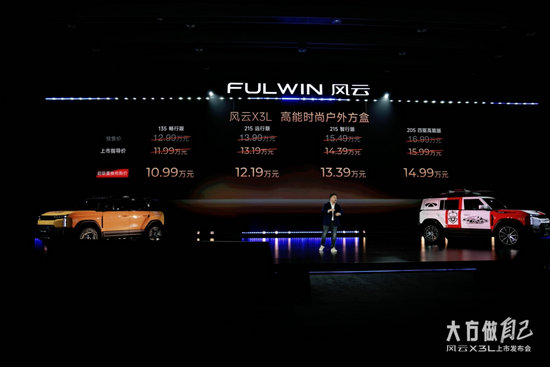 9月17日,风云X3L于成都举行上市发布会,正式售价为10.99万元起,共推出四个版本车型,135畅行版售价10.99万元、215远行版售价12.19万元、215智行版售价13.39万元、205四驱高能版售价14.99万元。同时,六大官改版型同步亮相。