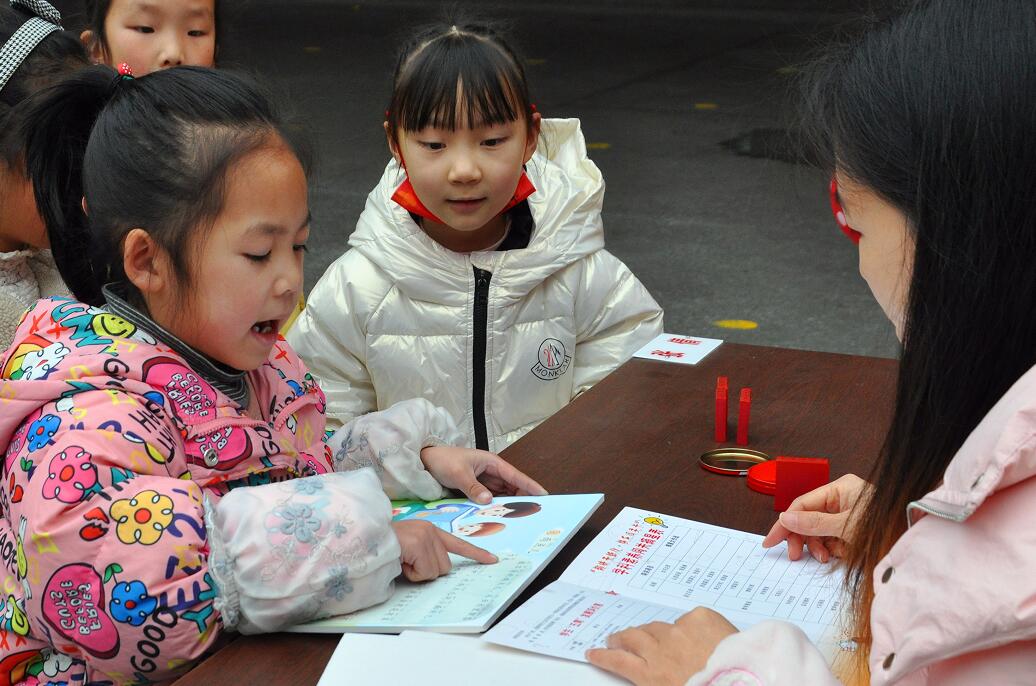 活动现场如同一个游乐场,孩子们在各个关卡间轮流穿梭,通过回答问题、解决难题等方式来获得不同的星级。上午的语文乐园大闯关活动包括“朗读课文我最行”、“认读词语我最棒”、“背诵篇目我最熟”、“表达交流我最溜”等四个关卡,每个关卡的内容设计都涵盖了本期的主要教学内容。测评采用抽签的方式,从拼音、生字、背诵、看图说话等四大板块,让孩子们对所学知识加以运用,充分展示自我。
