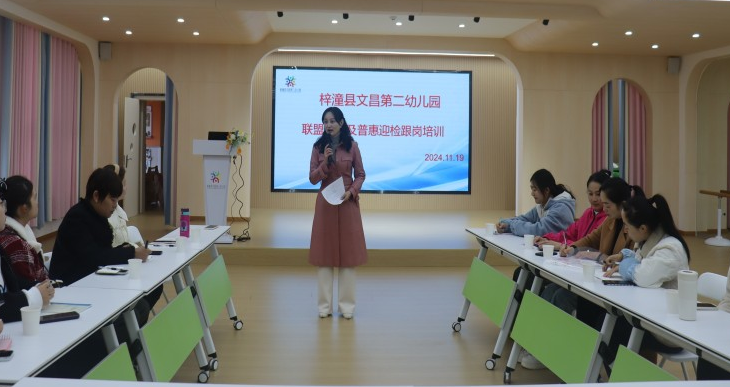 为了助推全县学前教育普及普惠迎检工作,搭建园所间相互学习、相互促进的交流平台,11月19日上午,梓潼县文昌二幼作为牵头园,特邀许州、仙峰、马鸣、双板、演武五所小学附属幼儿园10余人来园,开展了以“普及普惠同发展 帮扶培训助提升”为主题的2024年秋观摩交流活动。