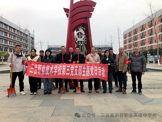 绵阳新闻网讯 阳春三月,万木争春。为了引导广大教师、学生树立生态文明意识,进一步弘扬植绿、护绿、爱绿的文明新风,3月12日下午,三台县刘营职业高级中学校 <javascript:void(0);>第三支部组织党员教师志愿者、学生团员志愿者到勤琢广场一带开展了以“党建领航担使命,志愿劳动美校园”为主题的党日活动。