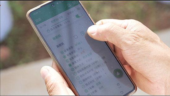 工作人员用手机演示操作水肥一体化自动化系统。(受访对象供图)