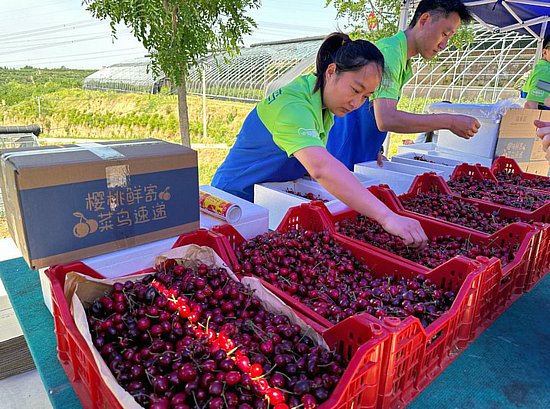 记者走访果园看到,不少快递公司把揽收服务点搬进果园里,游客在园区采摘樱桃后,现场就能寄给外地的朋友。农户通过电商、网络平台销售的樱桃,也可随时发出。“高峰时期,仅一个服务点每天可以发出上百件樱桃。”菜鸟速递快递员蒋嘉豪说,得益于河南便捷的高速交通,省内24小时可达,省外主要城市48小时可达,费用还是空运的一半。