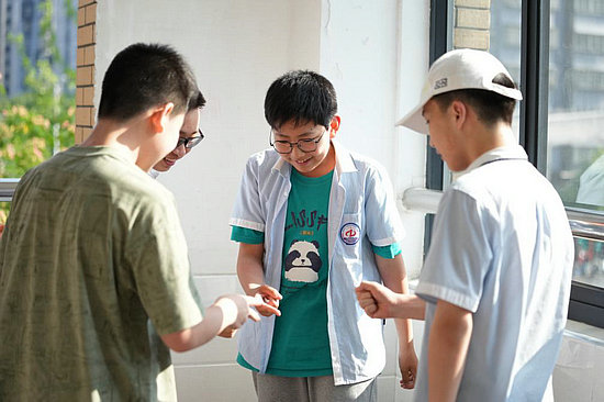 5月24日,周奕唯(右二)在课间和同学玩耍。