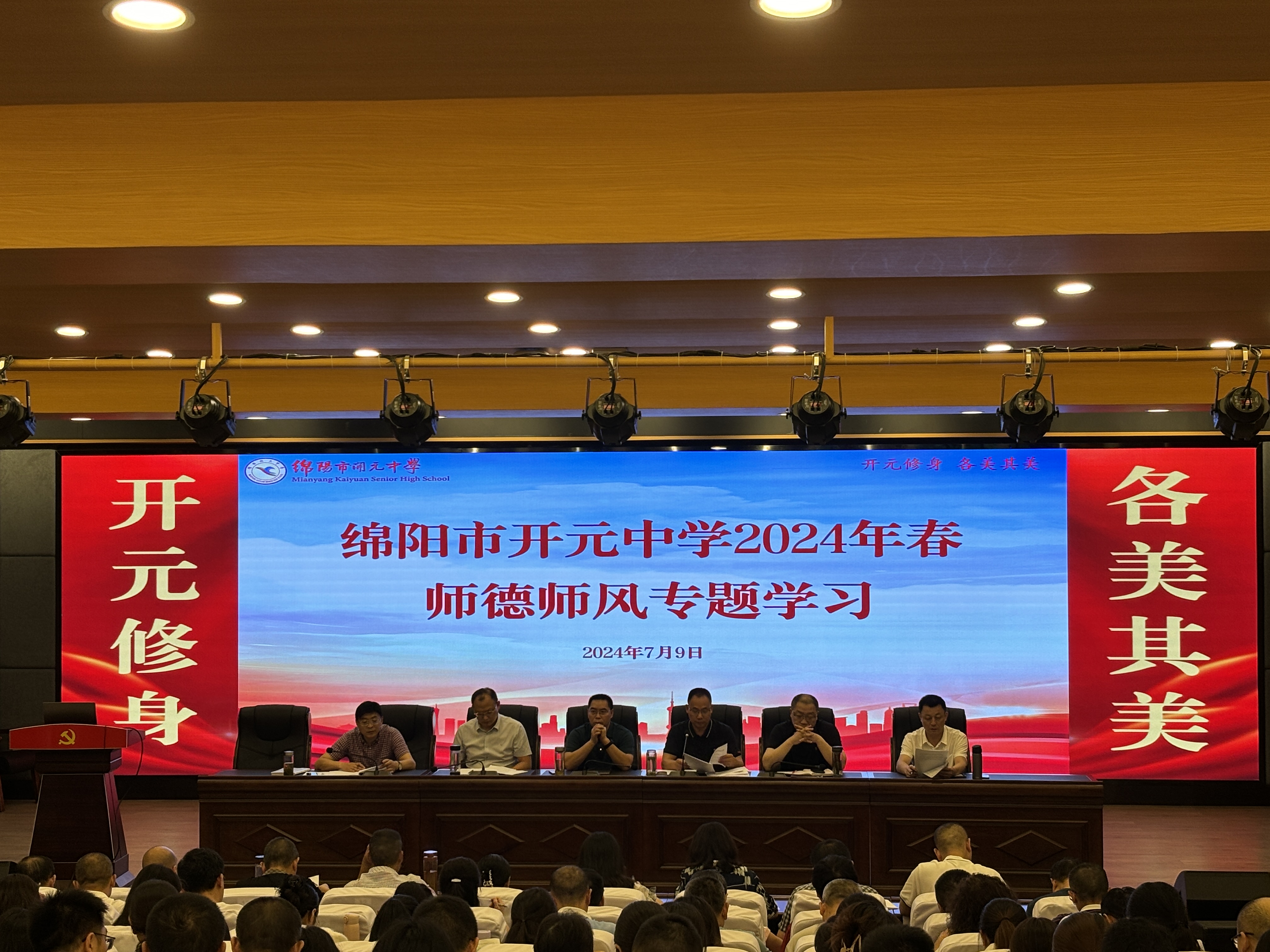 7月9—11日,绵阳市开元中学在和美楼6楼学术厅举行以“回首耕耘路,蓄力再启航”为主题的2024年春季期末总结大会,总结回顾学校各项工作取得的丰硕成果,探讨促进学校高质量发展的有力措施。大会由该校党委副书记、校长敬正雄主持。