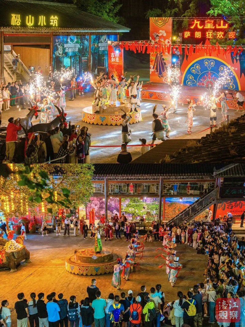 九皇山景区“羌韵萨朗·篝火狂欢”第九届萨朗狂欢活动吸引大量游客;