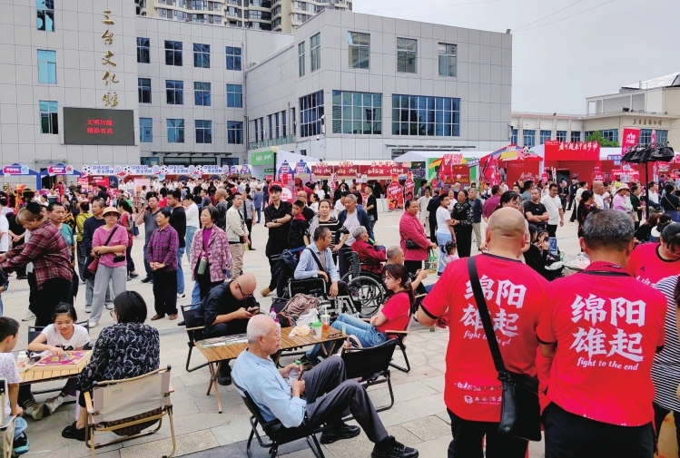 记者在现场看到,消费集市人流如织,江油肥肠、北川腊肉、梓潼片粉的香气在空气中交织,平武绿茶在沸水中舒展,安州安橙吸引食客驻足,富临、凯瑞等房企展销也人气颇旺,为观众提供安居绵阳的置业选择。同时,绵阳各县(市、区)特色啦啦队轮番上阵表演,劲歌热舞嗨动全场。