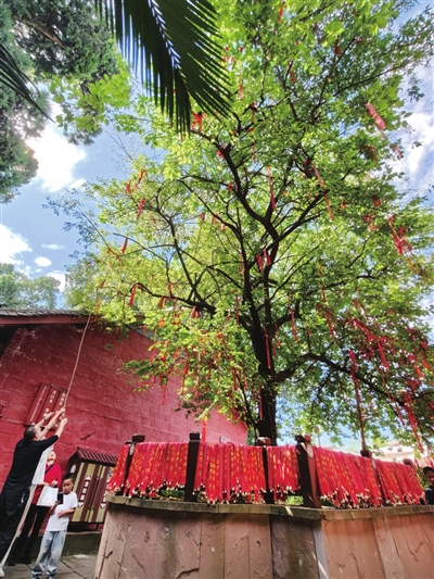 文昌洞经古乐是国家级非物质文化遗产,“双节”期间,乐团定时为各地游客演奏文昌洞经古乐经典曲目。“趁着国庆长假,来看看古柏树、古建筑,抛红绳的时候许下事业有成,国泰民安的心愿,既有趣又有仪式感,特别开心。”游客许嘉豪说。