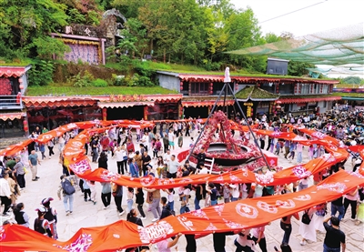 “早上还在欣赏九寨沟的山水,中午就在这里感受浓郁的羌族风情,这样的行程安排太充实了。”10月5日,来自重庆的游客张新望一家在北川九皇山景区羌情园,对一场传统羌族婚礼表演赞不绝口。