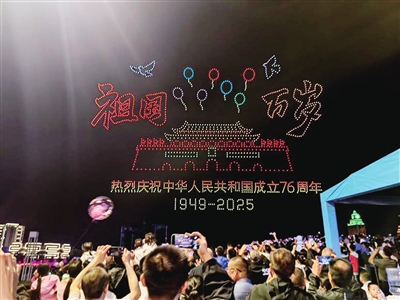 无人机+文艺汇演+美食市集,不仅让在场群众享受到了一场丰富的视觉盛宴,也将节日的氛围感直接拉满。“我们祖国越来越强大,这样的庆祝活动太有意义。”市民王女士感叹,在国庆这一天,带着孩子看传统文化与现代科技交融,是最好的爱国教育。