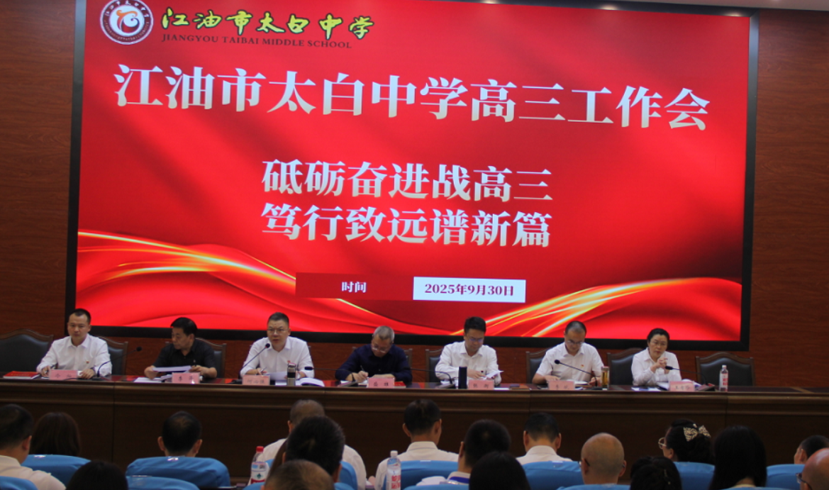 绵阳新闻网讯 9月30日下午,江油市太白中学在立德楼学术厅召开了以“砥砺奋进战高三 笃行致远谱新篇”为主题的2023级高三工作会。中共江油市委教育工委委员、教体局党组成员、副局长盛雄,江油市教体局教育一股股长李泽,该校行政及高三全体教师参加会议。会议由该校党委副书记、校长何必强主持。会议在激昂的国歌声中拉开序幕……