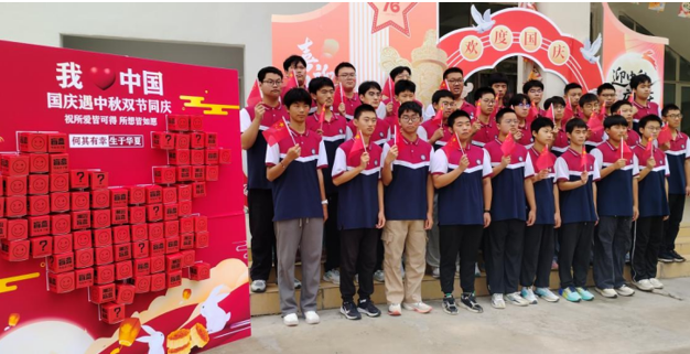 校园内,洋溢着浓厚的节日氛围。同学们在学校新建的运动场台阶上整齐列队,精神抖擞,齐声颂读《沁园春·长沙》等经典诗词。那激昂的文字、磅礴的气势,从同学们的口中喷薄而出,仿佛穿越时空,将大家带回了那个热血沸腾的年代,也激励着同学们以昂扬的斗志投身于学习和生活,为祖国的繁荣昌盛贡献自己的力量。