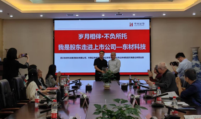 2025年9月22日,在上海证券交易所的指导下,由华西证券主办的“‘我是股东’走进沪市上市公司——东材科技”活动在四川东材科技集团股份有限公司(以下简称东材科技)总公司举行。公司董事会秘书陈杰、证券事务代表张钰对华西证券绵阳安昌路营业部总经理段坤、绵阳园艺南路营业部总经理王毅、投教专员和40多名机构投资者和个人投资者一行的到来表示热烈的欢迎。