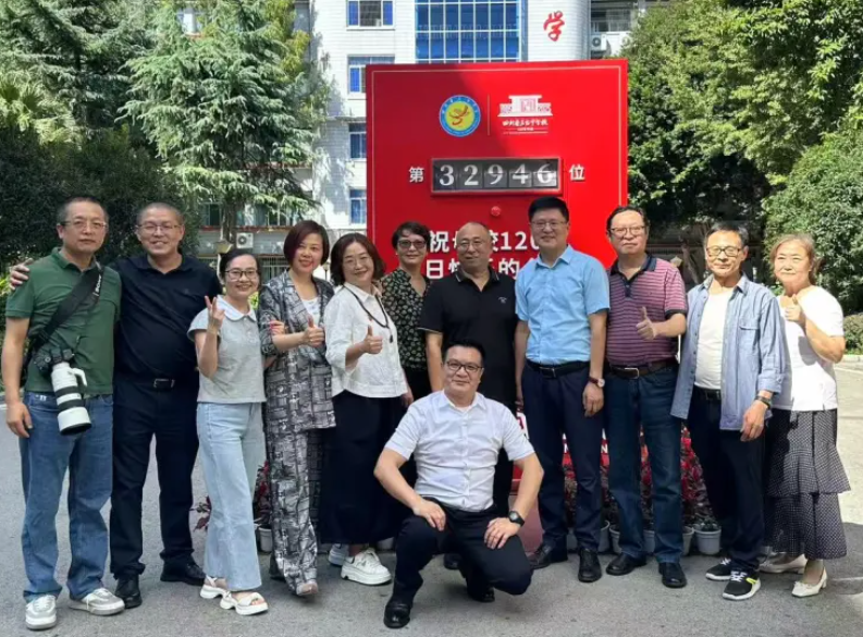 校门口120周年祝福打卡牌,无疑是开放日首日最耀眼的“网红地标”。从鬓角染霜的资深校友,到朝气蓬勃的年轻学子,或独自伫立,与母校地标同框;或三五成群,笑着喊出对母校的生日祝福。镜头咔嚓作响,将此刻的重逢与喜悦定格。每一张照片里,都藏着“我与三台中学”的独家记忆,字里行间的祝福,皆是对母校最深情的告白。