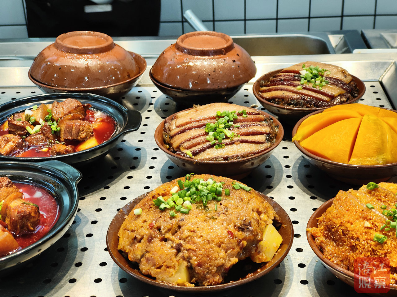 近日,记者跟随社区老人陈爱和其朋友陈文英的脚步,在中午时分来到餐厅,看到蒸烧白、烧排骨、西红柿炒蛋、香碗等菜品摆放整齐,络绎不绝的食客有序排队取餐。