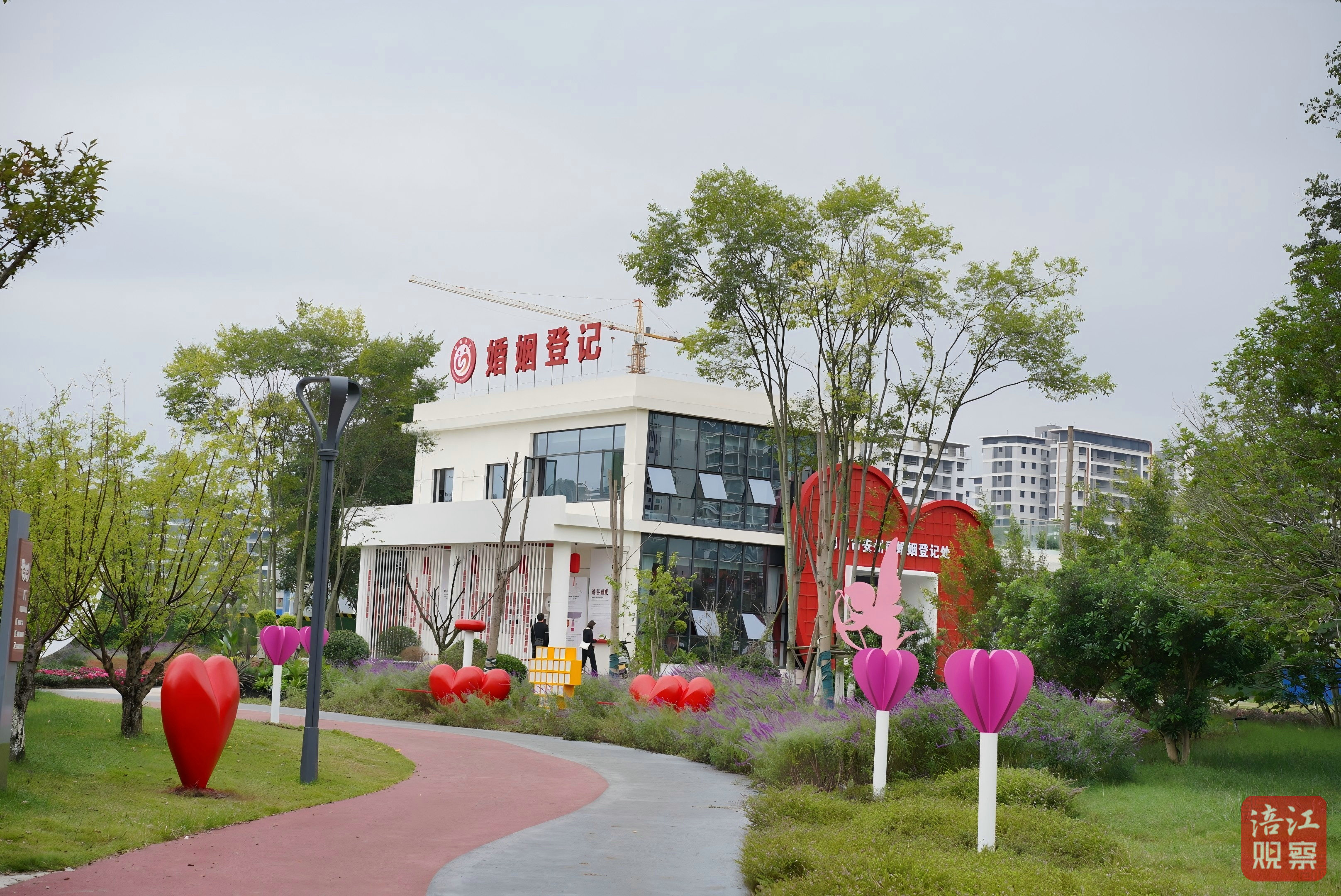 安州区民政局婚姻登记处负责人陈娅表示,该登记处选址环境优美、交通便利的城市街头公园,户外草坪近4000平方米,在其中开辟了西式宣誓区、爱情步道、爱情主题微景观等,使公园的自然景观成为婚姻登记仪式不可或缺的一部分,真正实现了“在公园里领证,在风景中定格幸福”。