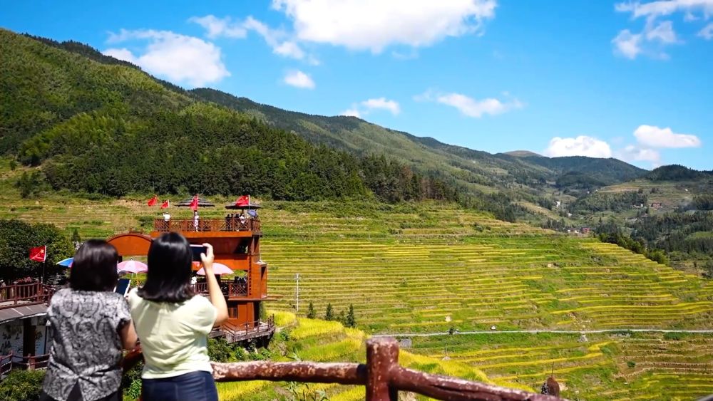 位于湖南新化的紫鹊界梯田景区迎来最佳观赏期,游客们来到这里,打卡壮观的梯田美景,感受千年农耕文化。