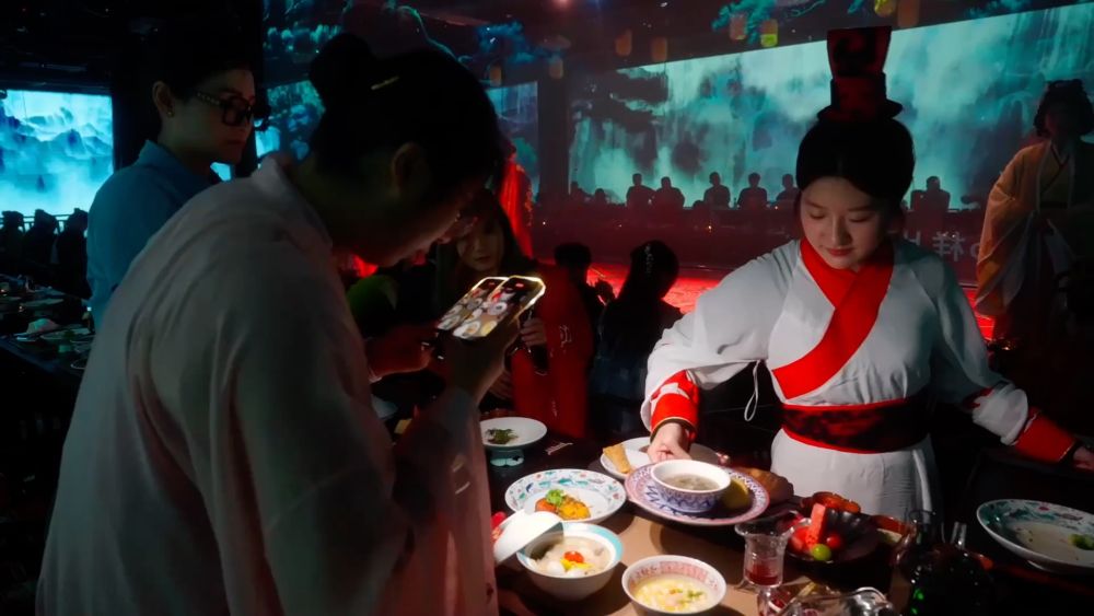 为了提升用餐体验,项目还提供专业的汉代妆造服务,让游客在专业团队的打造下,实现从现代游客到“汉代贵族”身份的转变。