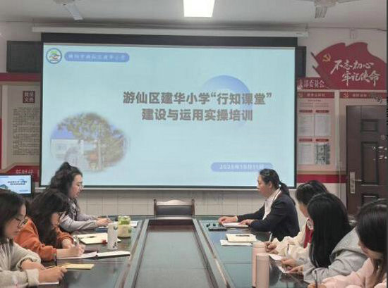 绵阳新闻网讯 为了推进“行知课堂”建设,提升教师教学实践能力,10月11日,游仙区小枧镇建华小学组织全校教师在会议室开展了以“深耕行动课堂培训,赋能教师教学实践”为主题的“行知课堂”建设与运用实操培训教研活动。