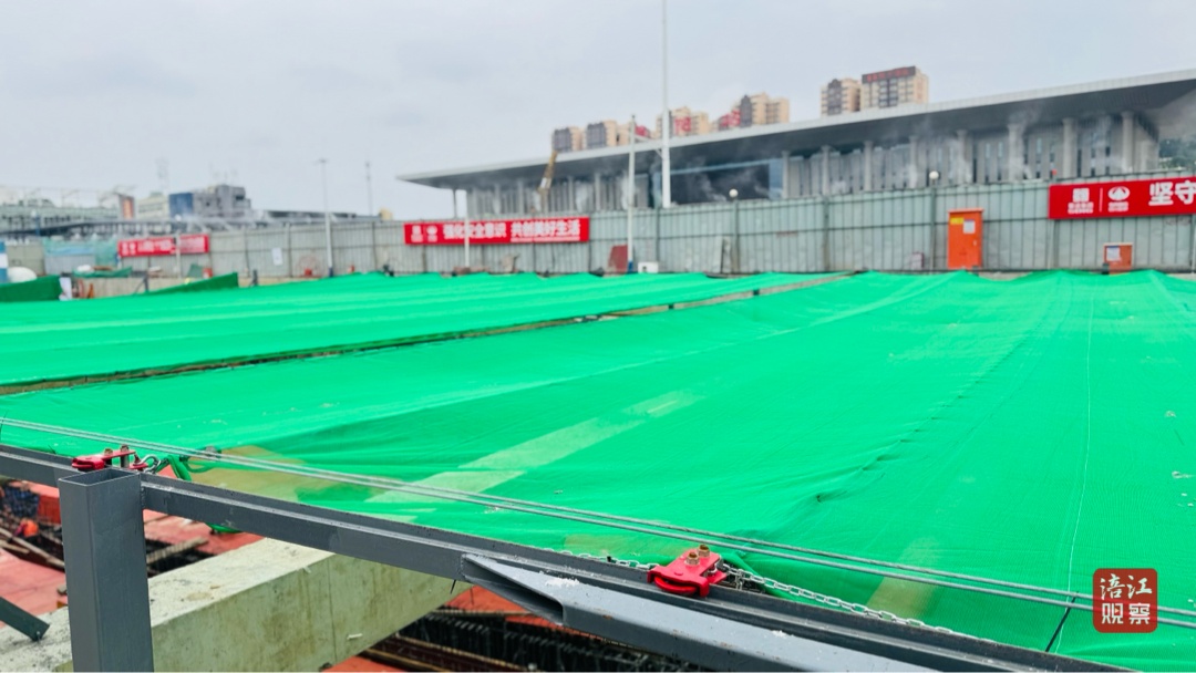 这套天幕系统集高度自动化与集成化于一身,相当于为工地披上了一件“绿色智能外衣”。“每个天幕单元均配置了2台特制的1.5千瓦减速电机,为其开合提供强劲而稳定的动力。当基坑内需要进行大型机械吊装或土方作业时,操作人员仅需通过遥控器或手机APP即可远程下达指令,整个单元在几分钟内便能完成开启或闭合。”绵阳火车站站前广场及周边配套设施建设项目技术负责人阳军说。