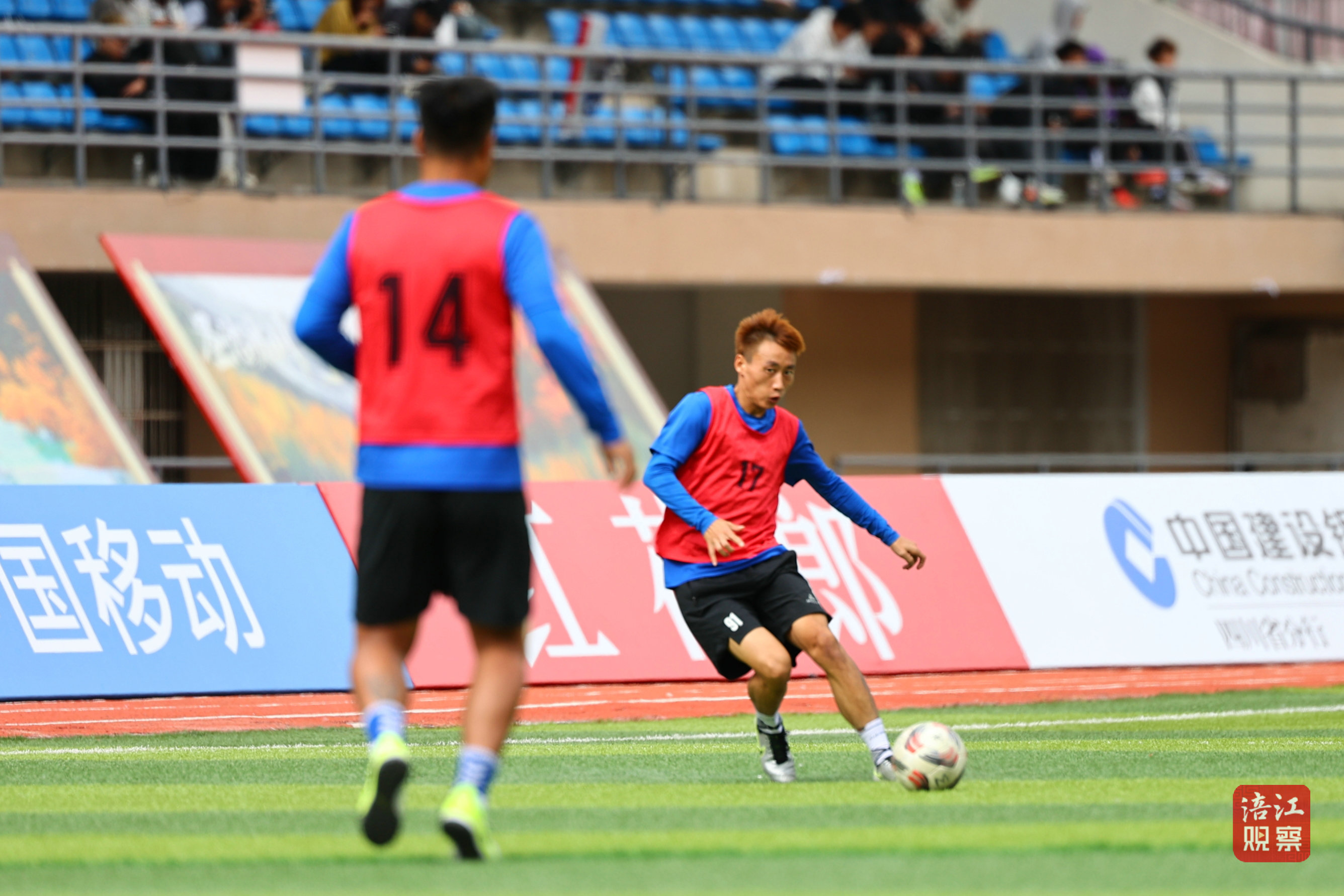 10月16日下午,记者在阿坝州茂县体育场看到,绵阳九洲长虹队正紧锣密鼓地进行着赛前的适应性训练。