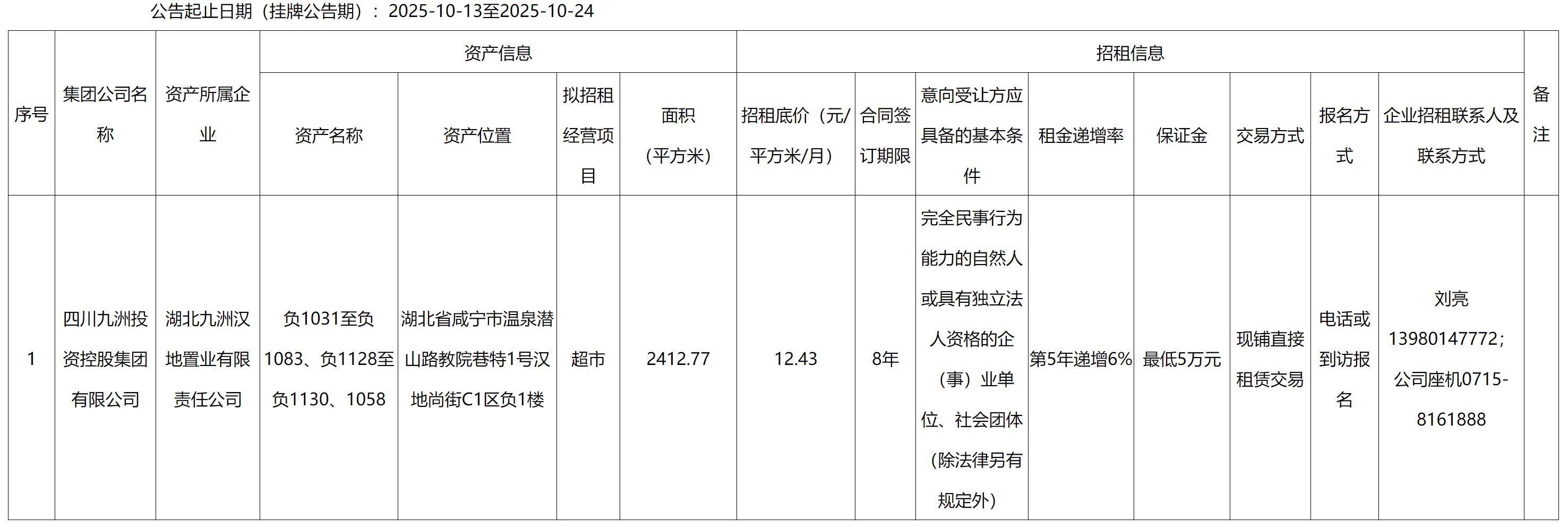 四川九洲千城商业管理有限公司湖北项目部汉地尚街商铺出租公告