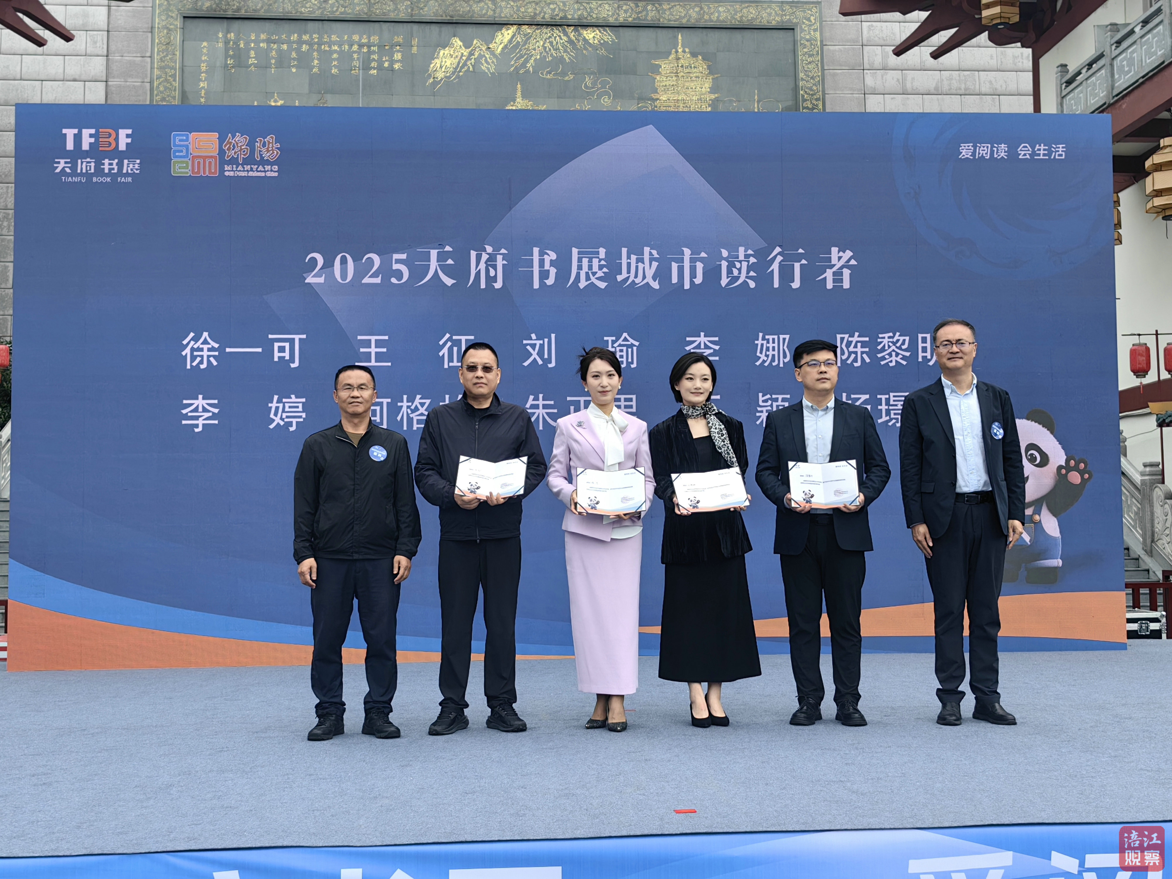 2025天府书展绵阳分展场启动仪式期间,向“城市读行者”颁发聘书