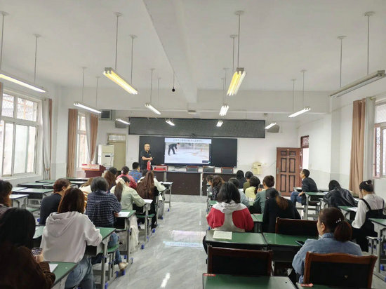 接着,来自四川省公安消防安全技术服务中心的余朋警官为全校教师开展了消防安全知识培训。余教官通过一些骇人听闻的案件中,为大家讲述了火灾的危害性,又从如何预防火灾,遇到火灾后如何逃生,如何报警,如何求救等为大家上了一堂生动的消防安全课。余教官还语重心长地告诫大家,无论是家中,还是单位上,以及车上,配备必要的灭火器材尤其重要,对消防器材的使用进行了详细讲解。