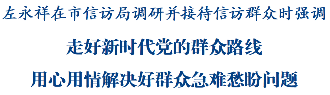 左永祥在市信访局调研并接待信访群众时强调:走好新时代党的群众路线,用心用情解决好群众急难愁盼问题