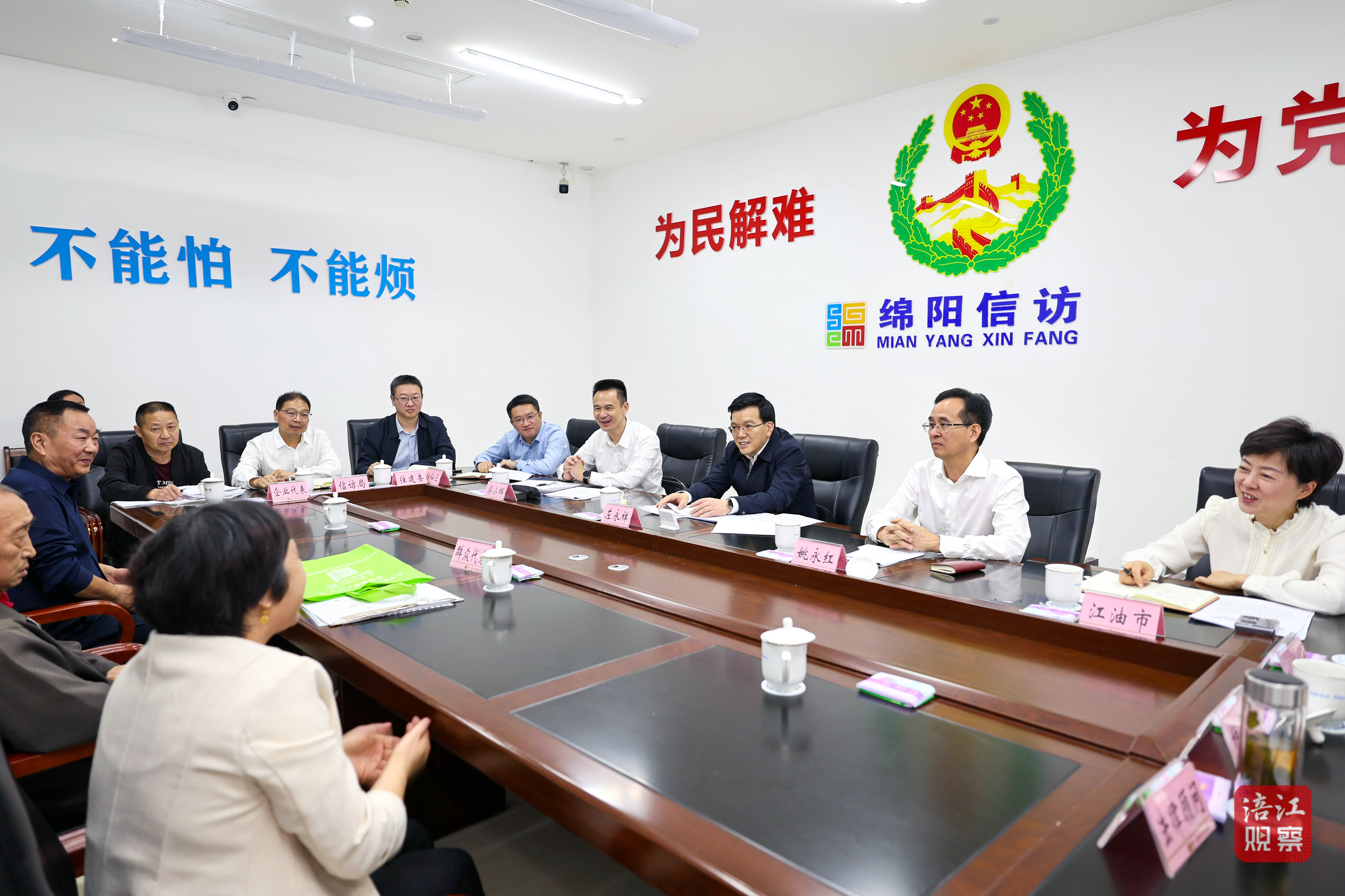 调研过程中,左永祥强调,信访工作是送上门来的群众工作,是落实“双提双解”常态化工作机制的有力抓手,事关群众切身利益和社会和谐稳定。要始终坚持人民信访为人民,扛牢为民解难、为党分忧的政治责任,加强协同配合,带着感情、带着责任做好信访工作,为绵阳高质量发展营造安全稳定的社会环境。要扎实推进信访工作法治化,严格落实《信访工作条例》,强化信访问题源头治理,健全完善矛盾风险监测、研判、评估等机制,常态化开展矛盾纠纷排查,滚动收集、果断处置各类苗头性问题,切实把矛盾纠纷解决在基层、化解在萌芽。要坚持分类处置,进一步完善理念思路、优化制度机制、创新方法手段,持续推进信访积案化解,对合理合法诉求限期解决到位,定期开展政策解释、释法明理、关心关爱等工作,不断提高信访工作质量和群众的满意度。要压紧压实责任,认真落实领导干部包案、带头接访下访等制度,强化统筹调度、跟踪督办,真心实意为群众排忧解难。要建强干部队伍,配齐配强工作力量,加强教育培训,提升信访干部依法履职能力,着力打造一支对党忠诚可靠、恪守为民之责、善做群众工作的高素质信访工作队伍。