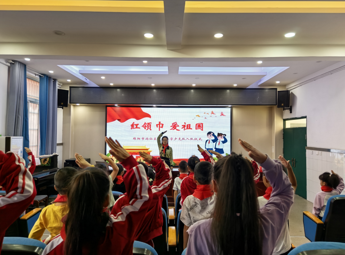 10月13日,游仙区石马小学举行了以“红领巾心向党 争做新时代好队员”为主题的建队日新队员入队仪式,一批一年级学生光荣加入了中国少年先锋队。