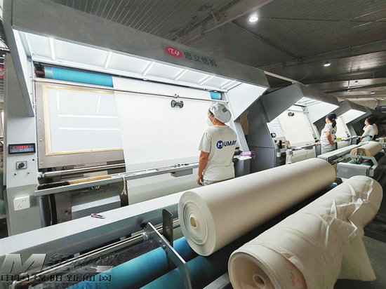 人力资源经理刘欢指着生产线介绍:“我们现在拥有192台布机,其中一半都是世界先进水平的机械,每天满负荷生产下,日产量都在10万米以上。”这些坯布经过智能化质检后,将直接运往产业链下一环节。