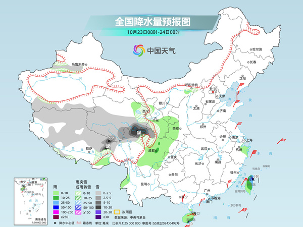 明后天,青藏高原等地有一次雨雪天气过程,西藏东部、青海东部和南部、川西高原中北部有小到中雪或雨夹雪,局地大到暴雪。同时,四川盆地、陕西等地雨水也将增多。