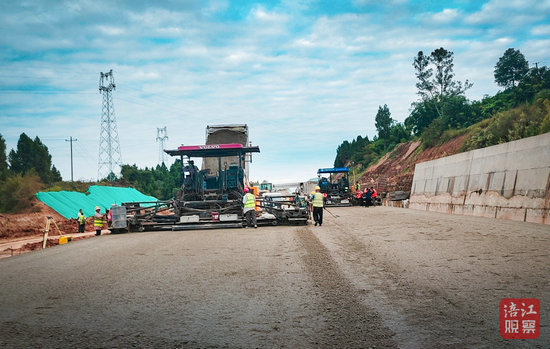 绵阳新闻网讯 近日,随着最后一车水稳混合料完成摊铺碾压,广绵高速公路扩容工程魏城至梓潼段左幅路面水稳层顺利贯通,标志着项目建设取得阶段性突破,为后续沥青面层施工扫除关键障碍。