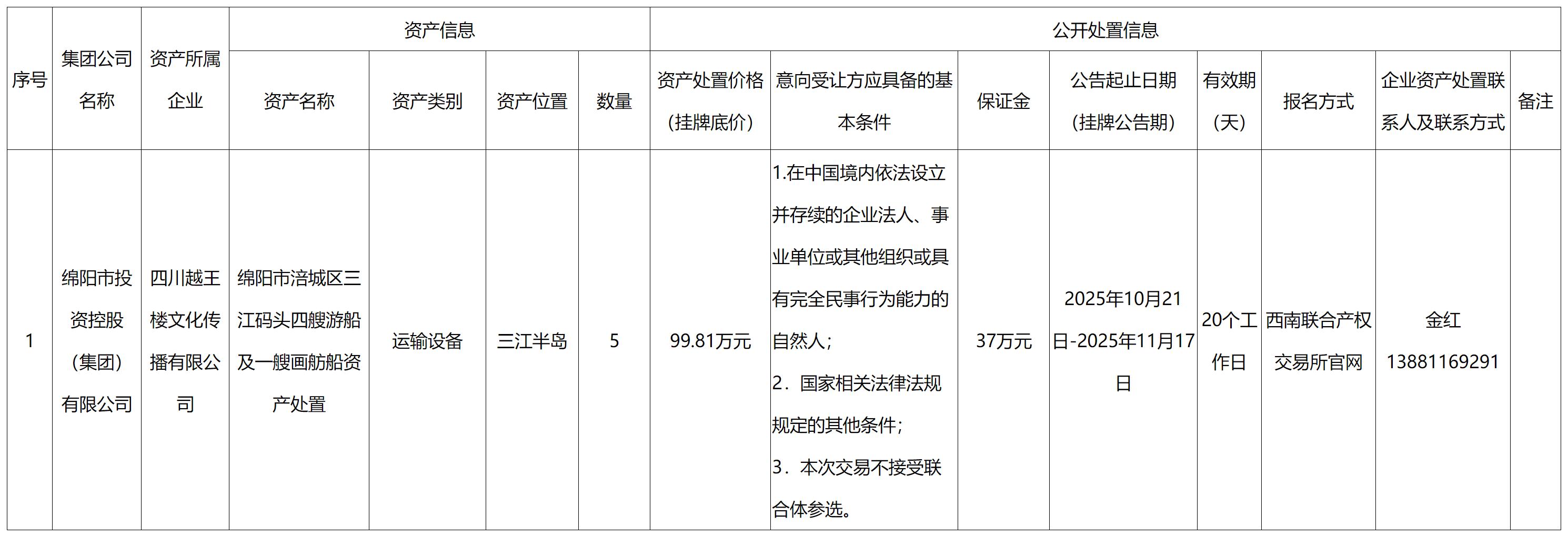 四川越王楼文化传播有限公司资产处置公告