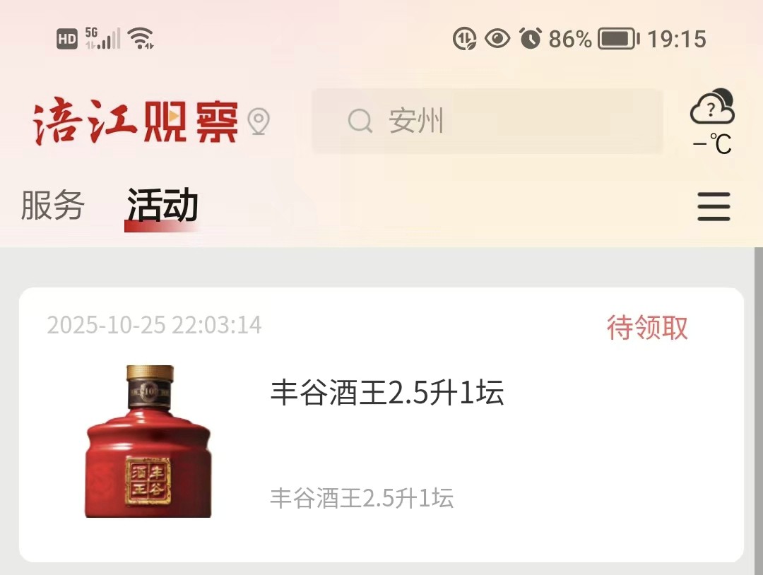 家住三台县的宋进便是一位幸运儿。赛前,他在竞猜活动中选择了绵阳队获胜。比赛结束后,他迅速参与抽奖环节,竟抽中了2.5L装的丰谷酒王大奖。
