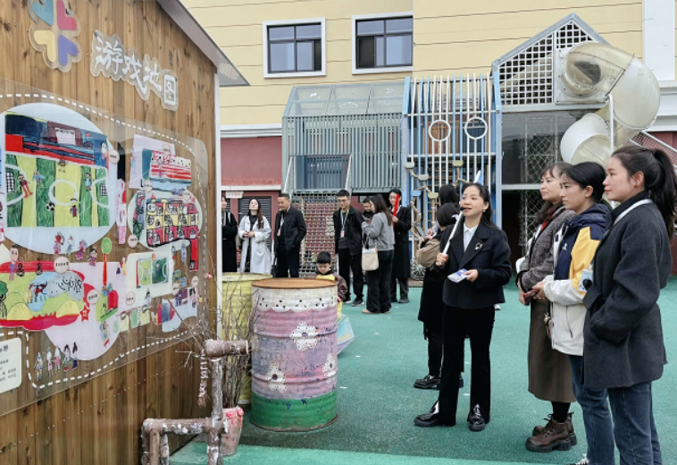 活动中,参观团在北街幼儿园教师团队的带领下,走访了户外与室内各游戏区域。户外的萌宠之家、沙水漫时光、童话树屋、“泥”好有趣、涂鸦吧等特色区域,以自然材料和开放环境支持幼儿自主探索;小小气象站、交通骑行区、木工坊、建构区等功能性区域,让孩子们在动手操作与角色扮演中提升综合能力。