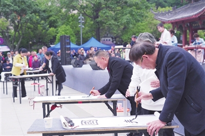 ③绵阳开放大学老年学员挥毫泼墨,展示学习成果。