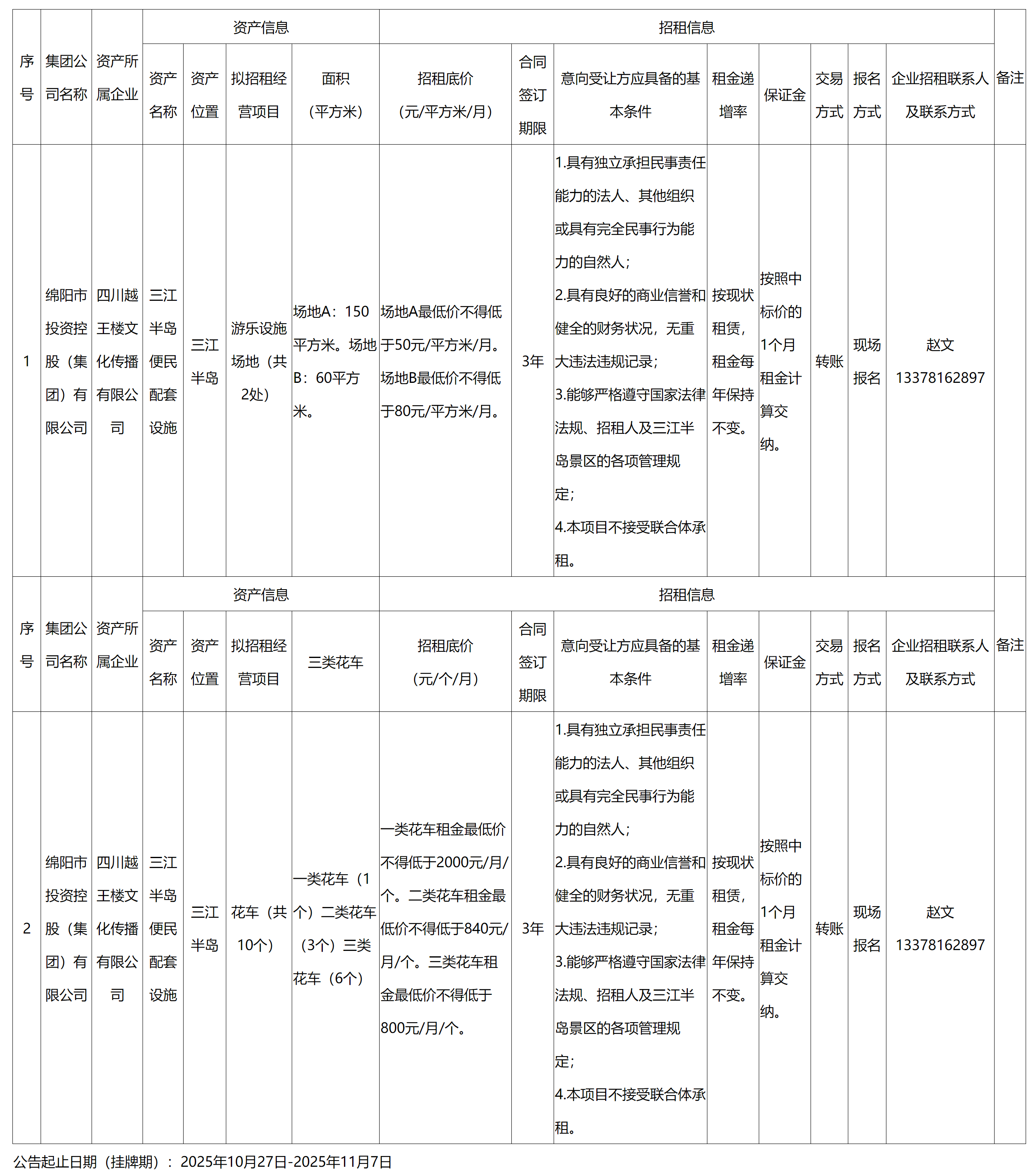 四川越王楼文化传播有限公司资产出租公告