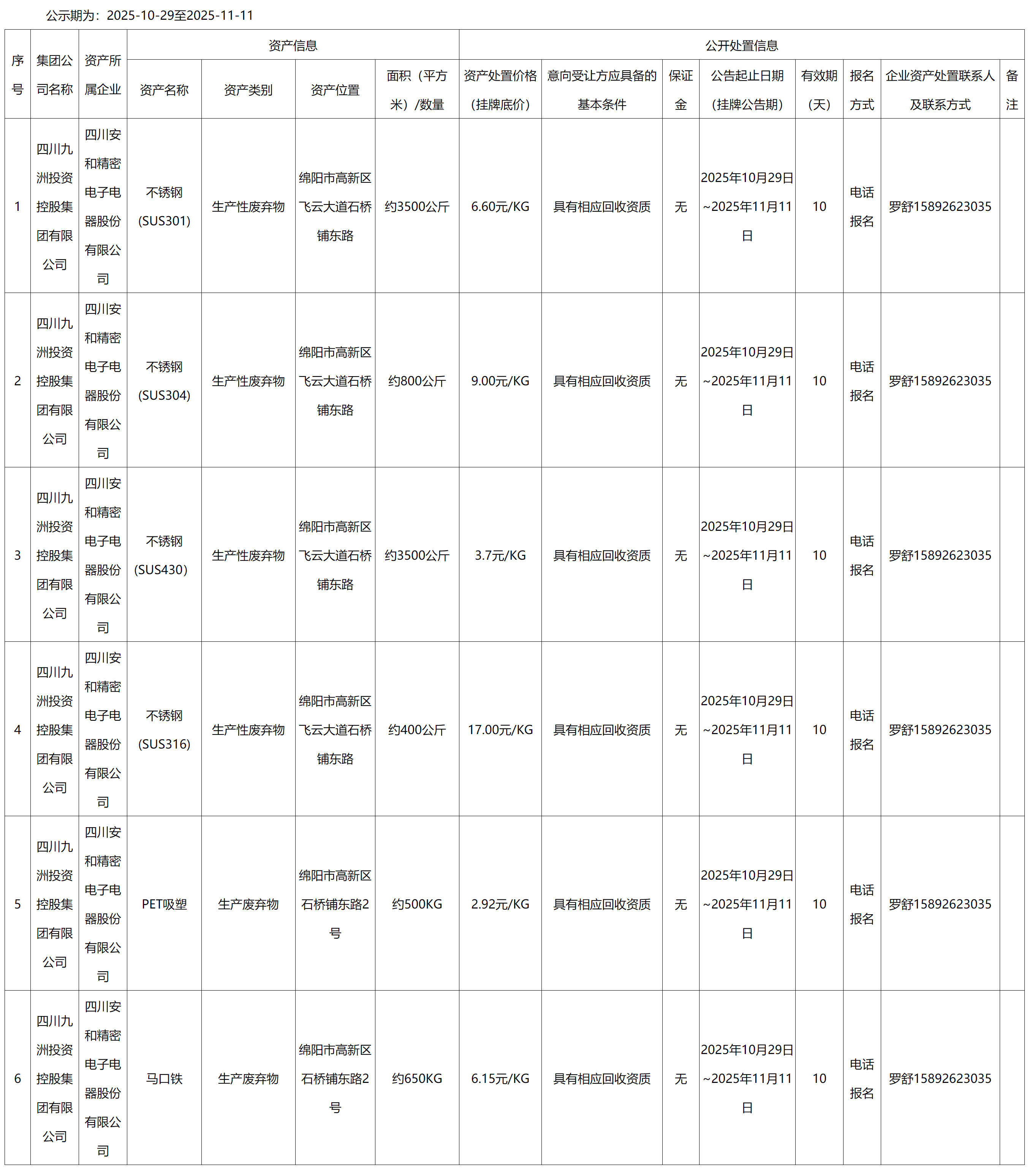 四川安和精密电子电器股份有限公司资产处置公告