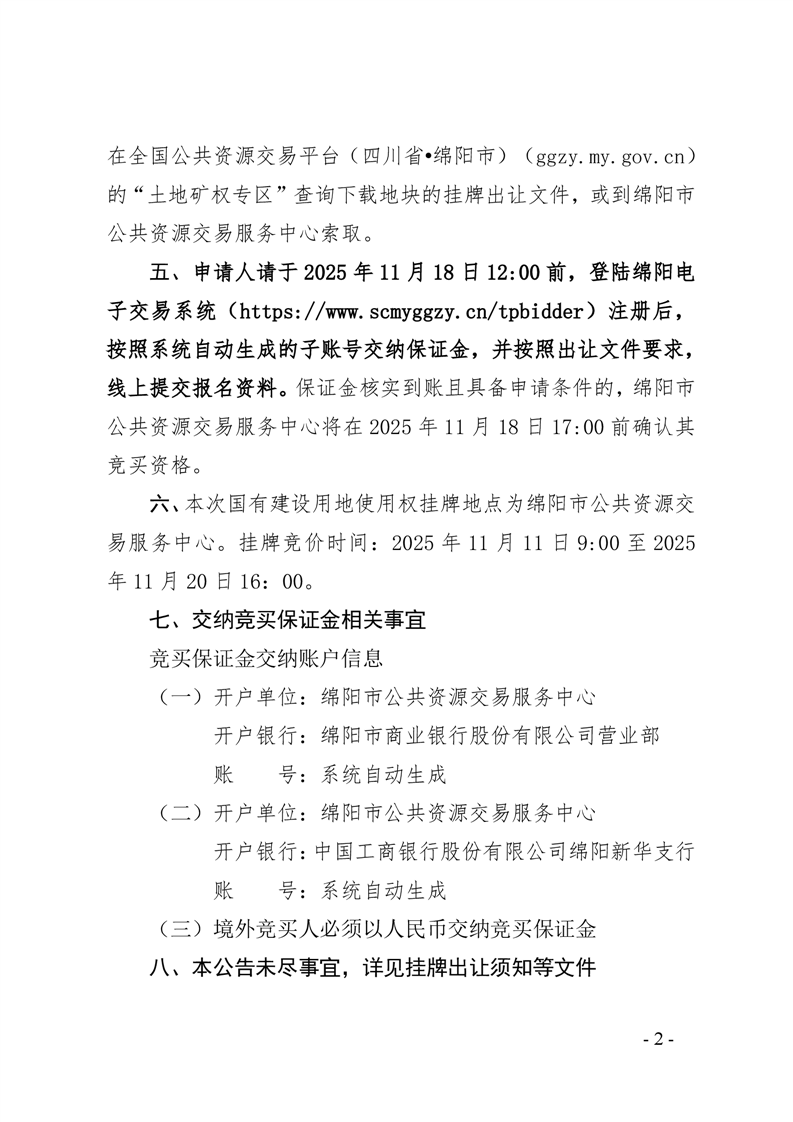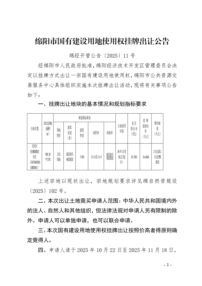 绵阳市国有建设用地使用权挂牌出让公告(绵经开管公告〔2025〕11号)