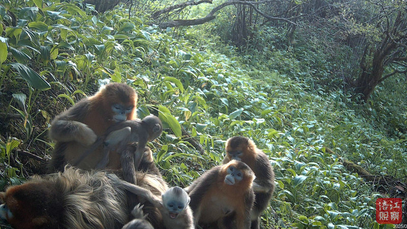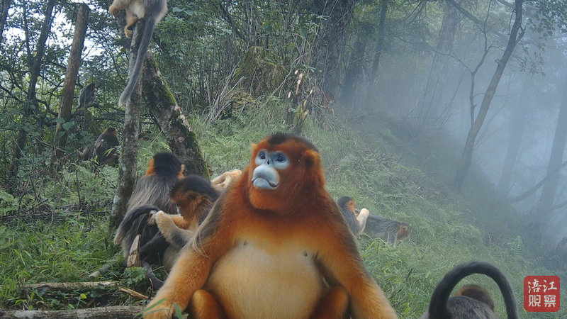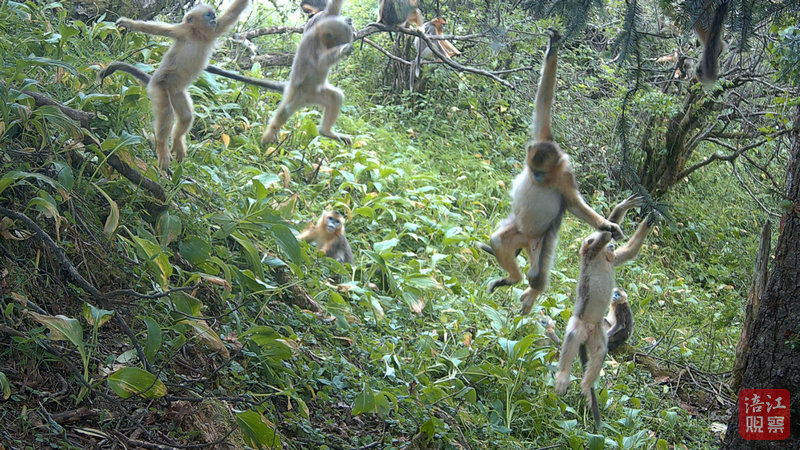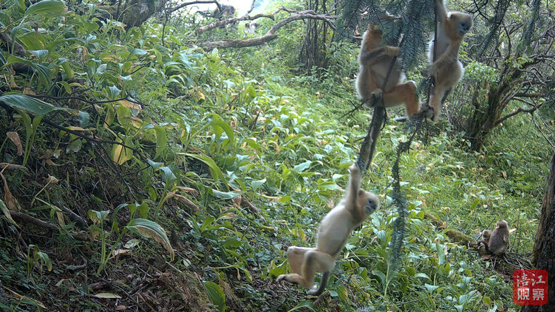 在大熊猫出现地方附近,川金丝猴的“日常”生活同样鲜活。画面中——