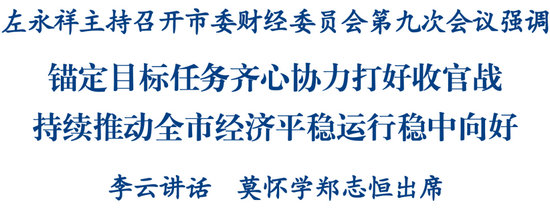 绵阳新闻网讯 10月30日,市委财经委员会第九次会议召开,省委常委、市委书记左永祥主持会议并讲话。他强调,要深入学习贯彻习近平总书记对四川工作系列重要指示精神,全面落实党的二十届四中全会精神,以及党中央和省委关于做好经济工作的决策部署,锚定目标任务,坚持问题导向, 增添务实举措,进一步补短板、锻长板、防风险,齐心协力打好收官战,持续推动全市经济平稳运行、稳中向好。