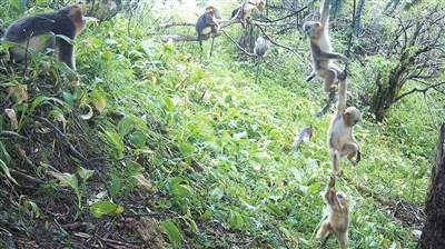 近日,大熊猫国家公园安州片区再添珍贵影像:画面中,大熊猫母子“亲子出行”,3只川金丝猴幼崽挂成一串在树枝上“荡秋千”。