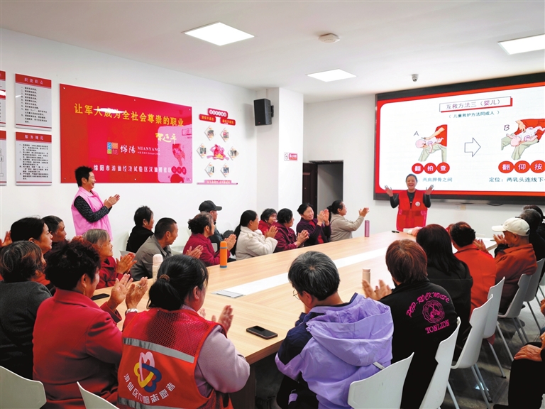 绵阳新闻讯 “婴儿被食物卡住该怎么急救?家人突发意外时如何科学应对?”10月 31日,游仙区汉仙桥社区综合服务中心内,一场干货满满的急救知识培训正在进行。50余名居民围坐一堂,认真聆听专业讲解、观看实操演示,不时举手提问,现场互动氛围热烈。