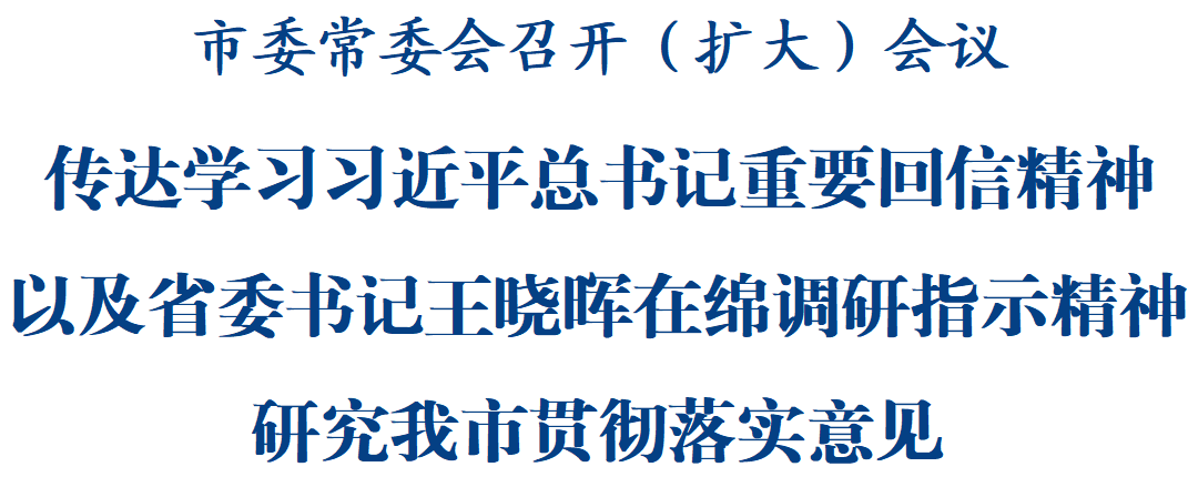 绵阳新闻网讯 10月31日,市委常委会召开(扩大)会议,传达学习习近平总书记重要回信精神,以及省委书记王晓晖在绵调研指示精神,研究我市贯彻落实意见。省委常委、市委书记左永祥主持会议并讲话。