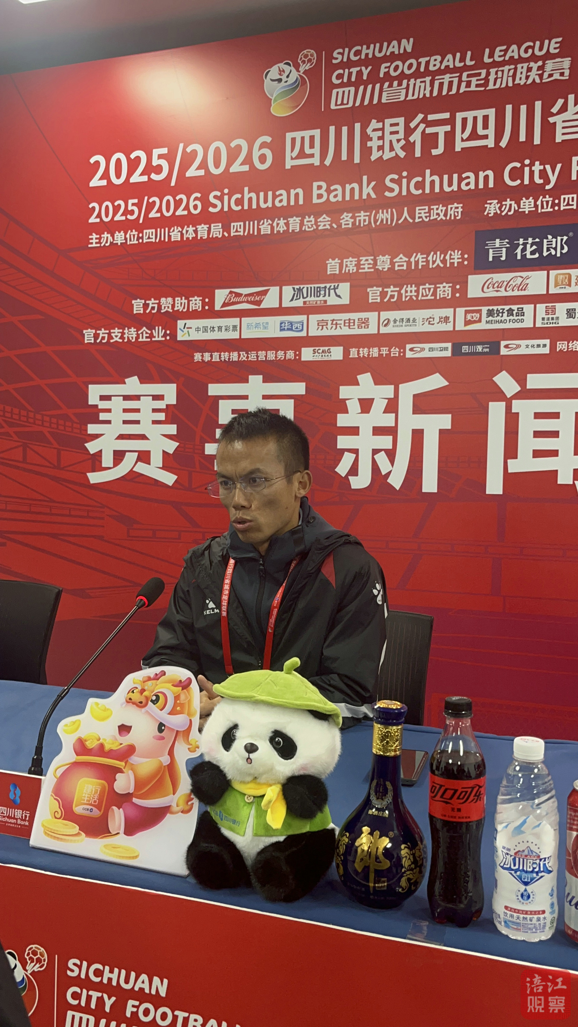 11月1日晚,绵阳九洲长虹队与甘孜州有机牦牛队比赛的赛后新闻发布会在三台县体育场举行。甘孜队主教练童加红、绵阳队主教练倪俊分别向现场媒体作了本次比赛情况的点评。