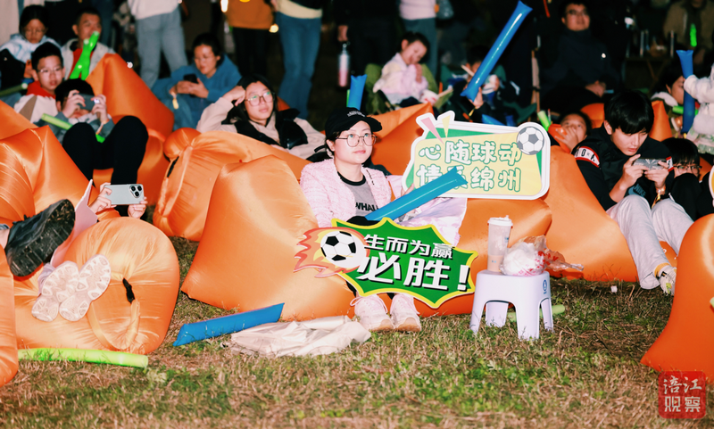 “在这里观看比赛,聆听音乐,这种体验太爽了!”市民刘生华和家人坐在露营帐篷内,一边跟着旋律轻唱,一边紧盯赛场攻防。