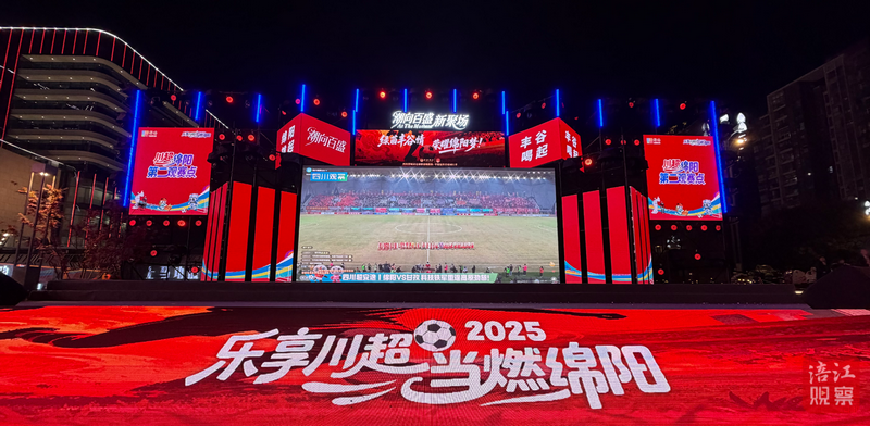而在科技城新区,新开业的上马百盛购物中心则以“赛事直播+开业福利”的组合,成为市民观赛消费的热门之选。广场中央的观赛区座无虚席,荧光棒与“绵阳雄起”的加油标语交织成红色的“海洋”。