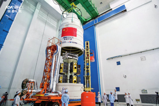 国星宇航将太空计算星座021任务12颗计算卫星发射升空,图为12星在箭上排布(2025年5月摄)国星宇航供图